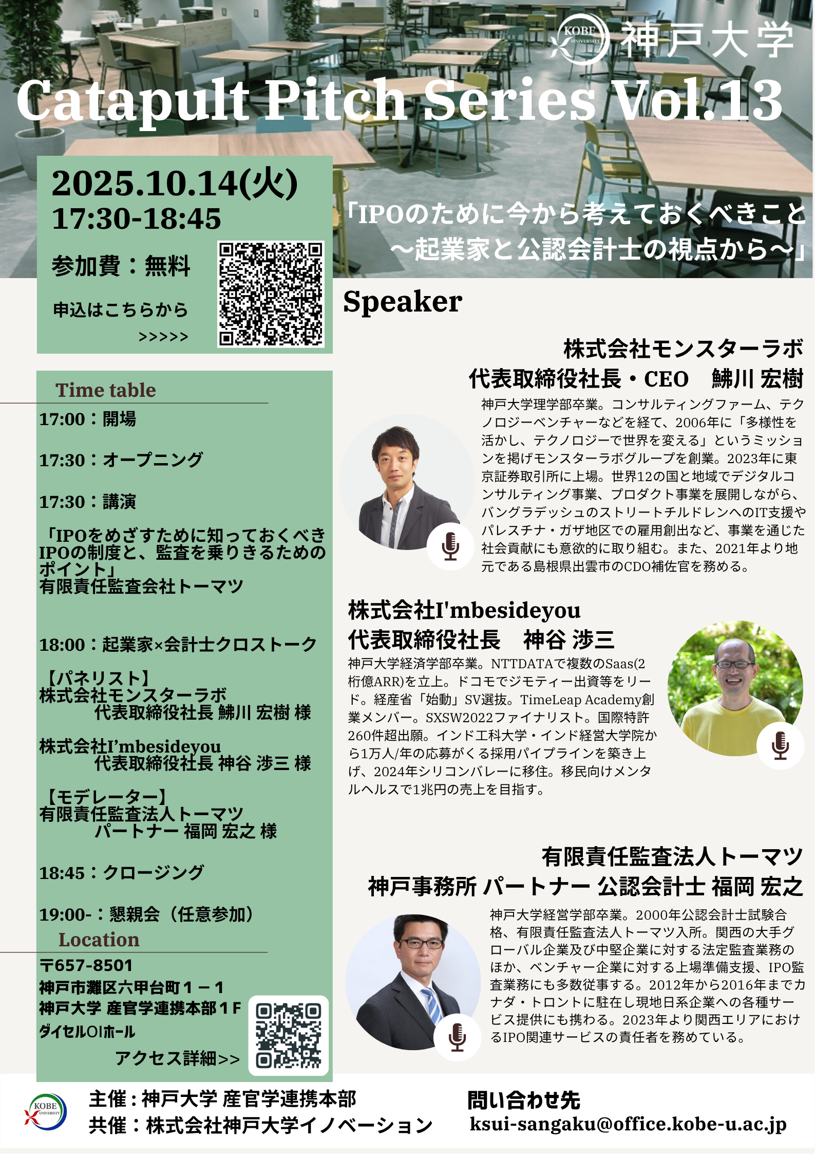Catapult Pitch Series Vol.13「IPOのために今から考えておくべきこと~起業家と公認会計士の視点から~」